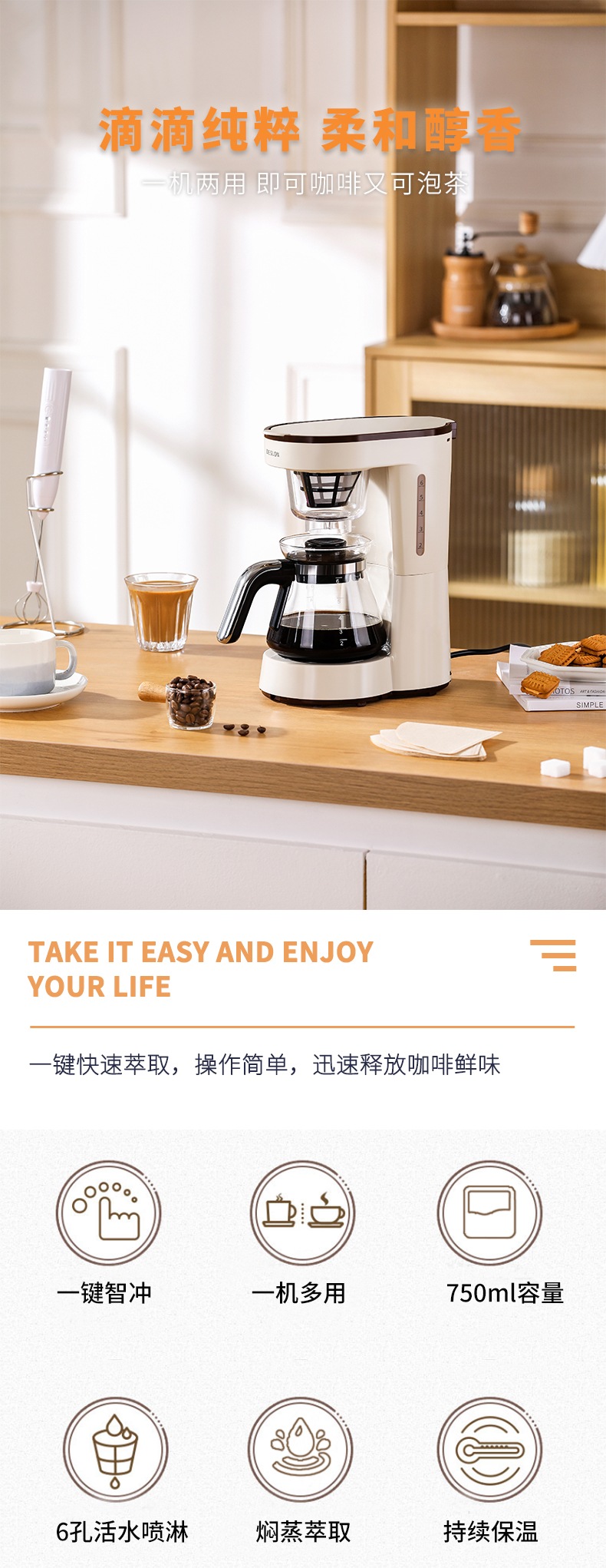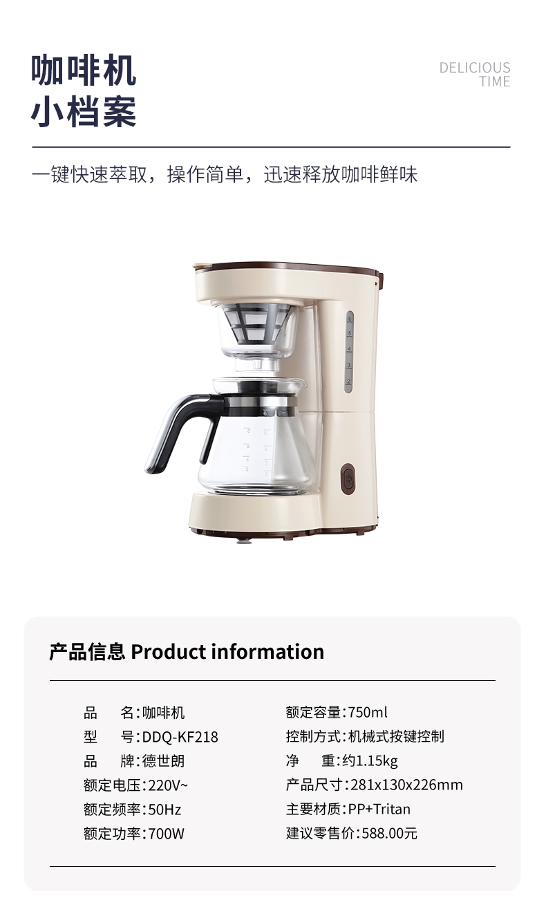 德世朗 咖啡机DDQ-KF218 750ml