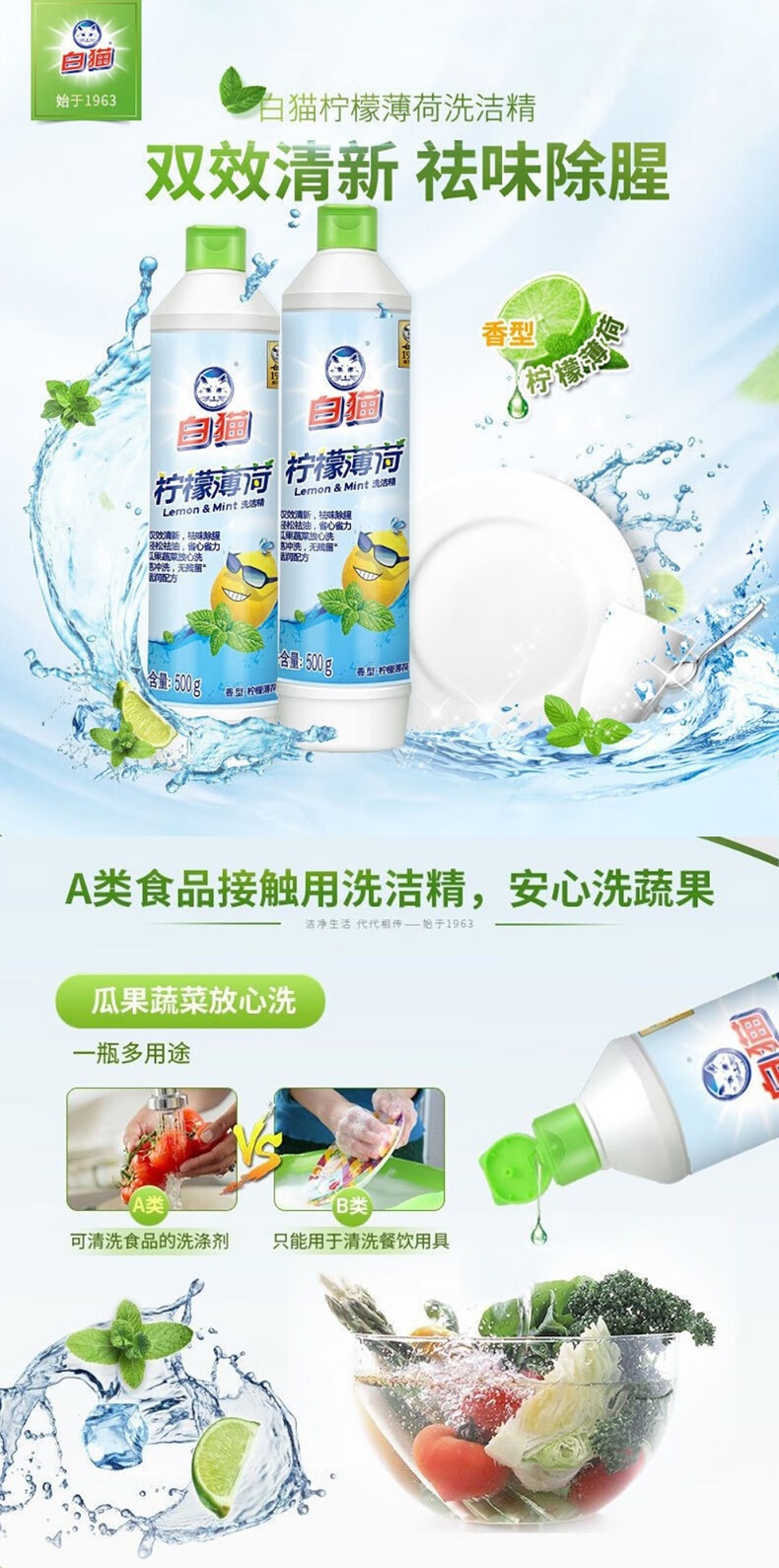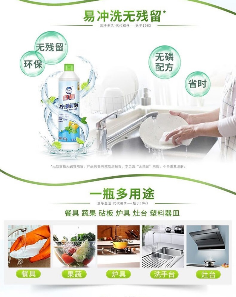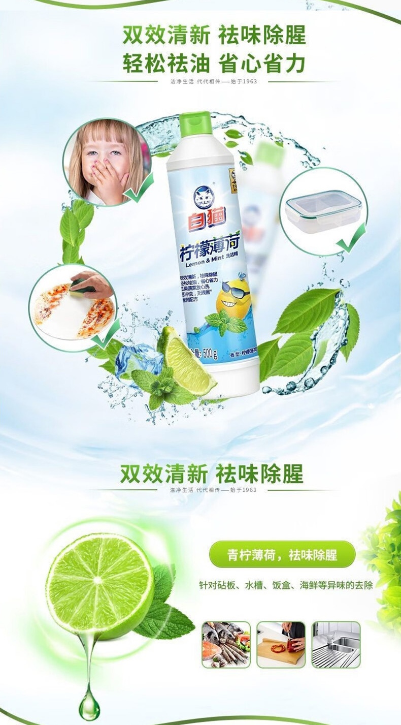 白猫柠檬薄荷洗洁精500g