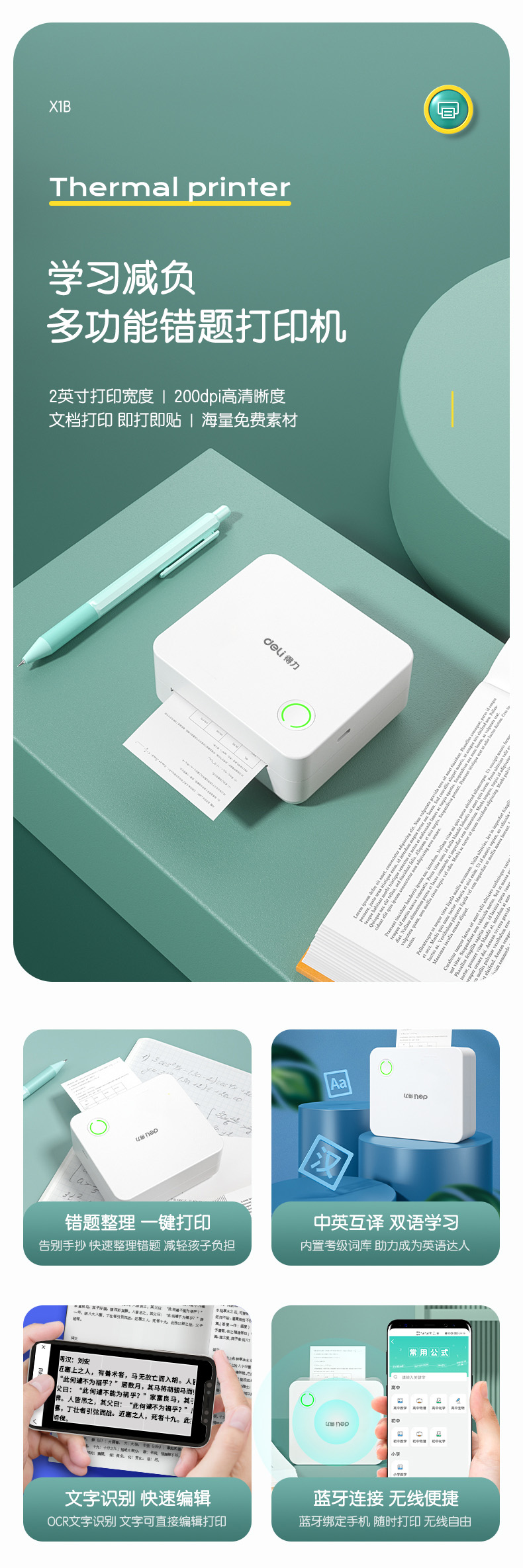 得力X1B相印宝 错题打印机白色