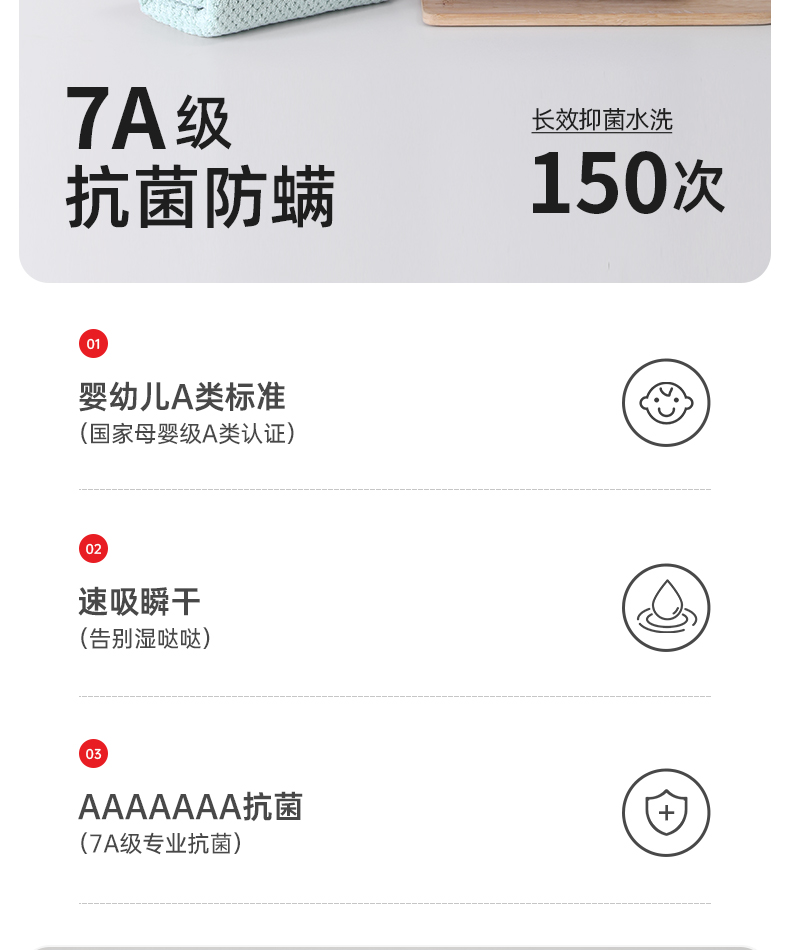 毛毛雨7A抗菌毛巾 颜色随机