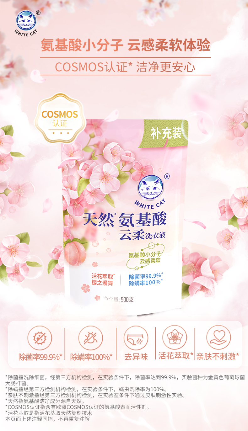 白猫天然氨基酸云柔洗衣液500g